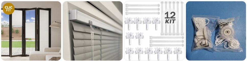 A Clip-Fit blind repair kit is most useful when the problem is in the fitting system, side guides, handles, or no-drill mounting hardware rather than in the main blind body itself. Because Clip-Fit blinds are built around a frame-mounted or pressure-mounted setup, the parts that fail are usually small but important for keeping the blind aligned, stable, and easy to use. A good Clip-Fit blind repair kit may include replacement clips, guide pieces, small brackets, handles, tension parts, fitting tabs, screws, or other small components that help restore the blind without replacing the whole unit.